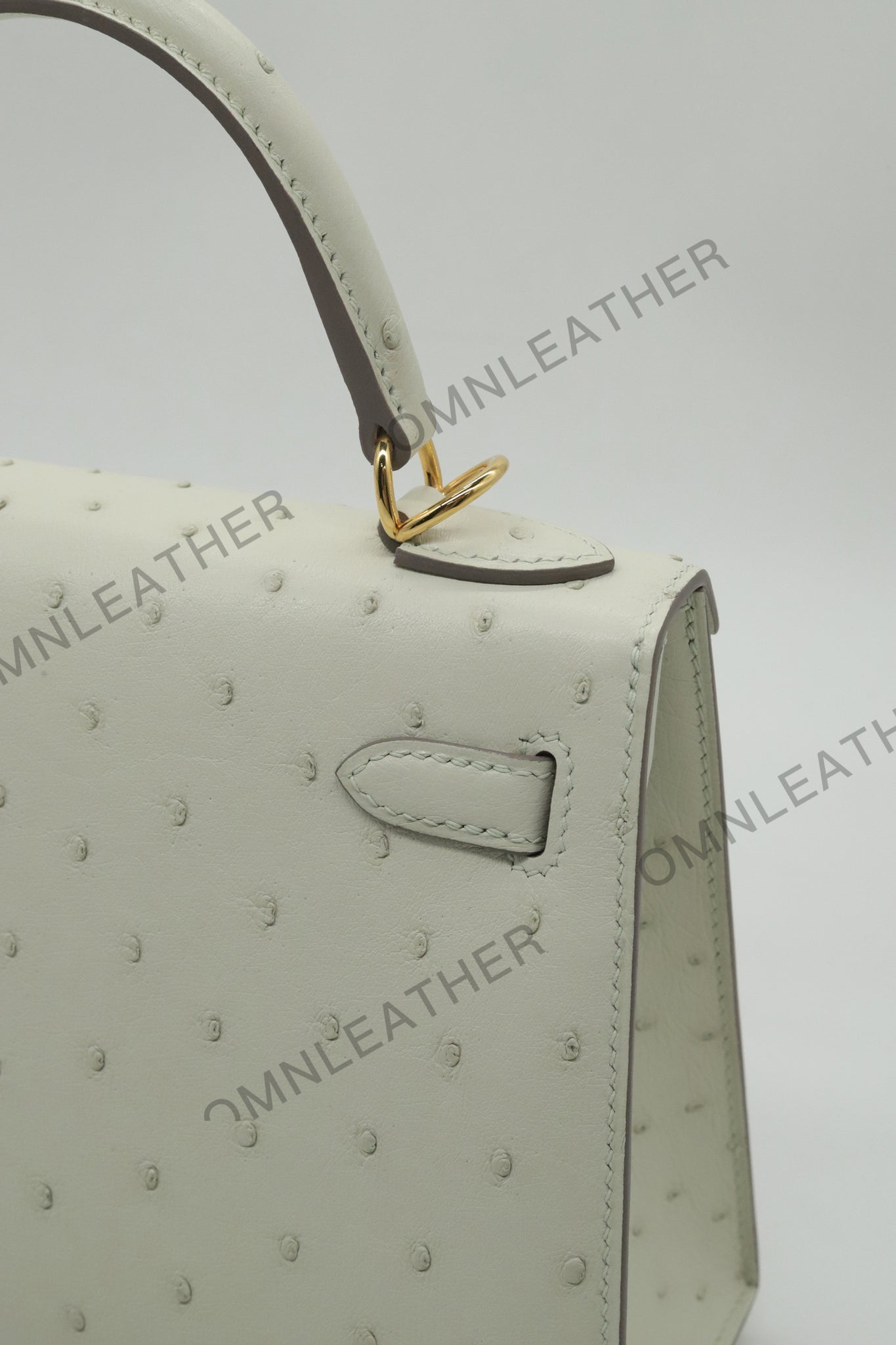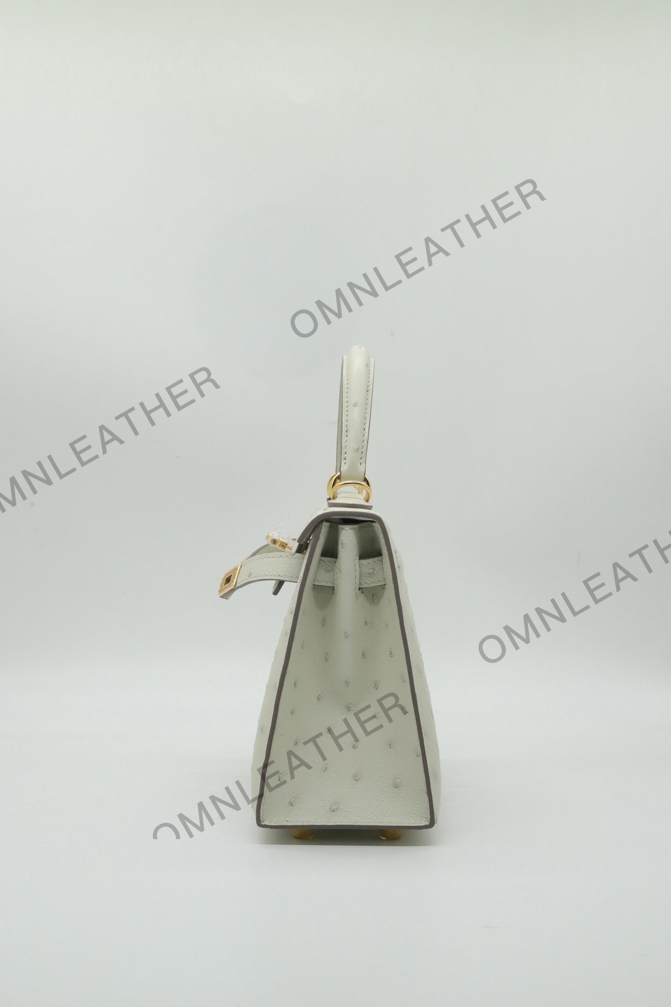 Verona 22 Kelly Style Ostrich Leather Cream Color Gold Hardware